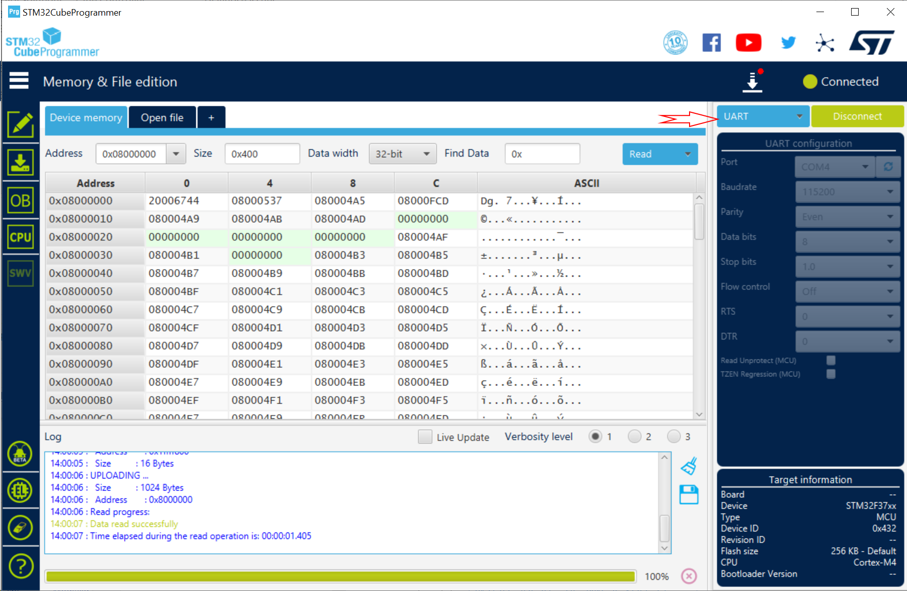 If your 32-bit board has no USB port, you can still use this program. Simply connect a PCUSB cable between your PC and the "TTLCOM" port and change the "USB" drop-down to "UART". Make sure the "Port" setting shows the correct port, then hit "Connect". From there, everything described above applies.