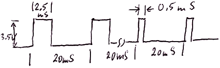 Note that it is the width (duration, in mS) of the pulses that matters, not the duty cycle (percentage of high time vs total period). The SPLat fAnOut instruction uses duty cycle, so we have to calculate the duty cycle that will give the required pulse width.
