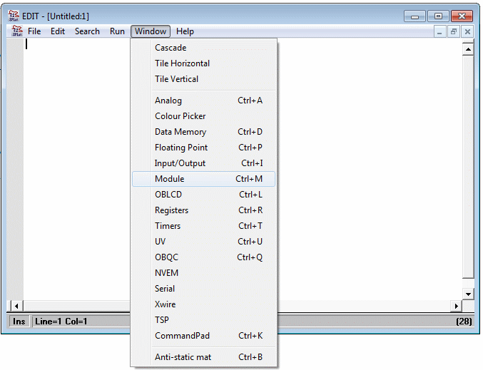 - You should see a window like this. If it fails to appear, repeat the menu selection Window > Module