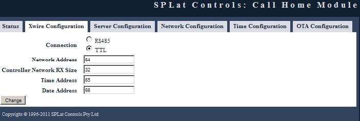 This tab allows you to configure Xwire communications between the SX10509 and its SPLat master.