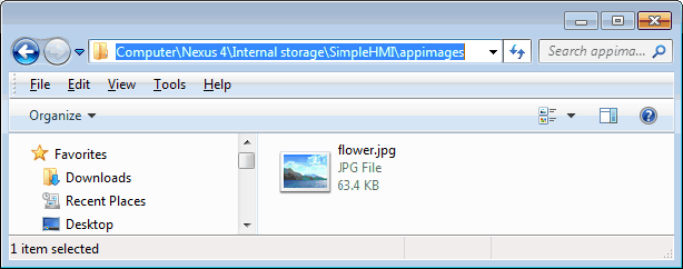 This is what the file path looks like in Windows 7 Explorer on a Nexus 4 'phone running Android 4.4.4. ...